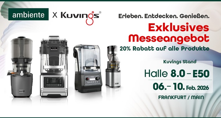 Anlässlich der Messe bietet Kuvings einen exklusiven Vorteil für Ambiente-Besucher: